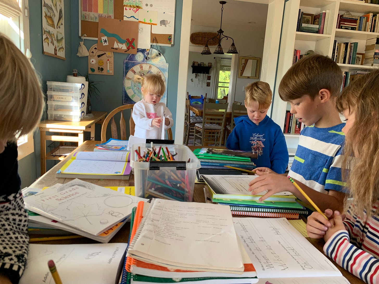 Hi! I’m Emily of Withyweather Farm & School and A Warm Hearth here on Substack. Today I’ll be sharing a typical school day for my family. I chose to document a day that didn’t include outside appointments or activities, so I could give you all the best example of what an in-home school schedule looks like. In case you’re interested in reading more, I’ve shared here what our homeschool curriculum looks like this year, as well as a post on three days in our life earlier this spring. Thanks so much to Catherine for inviting me here today! Without further ado: Here’s how we homeschooled today.